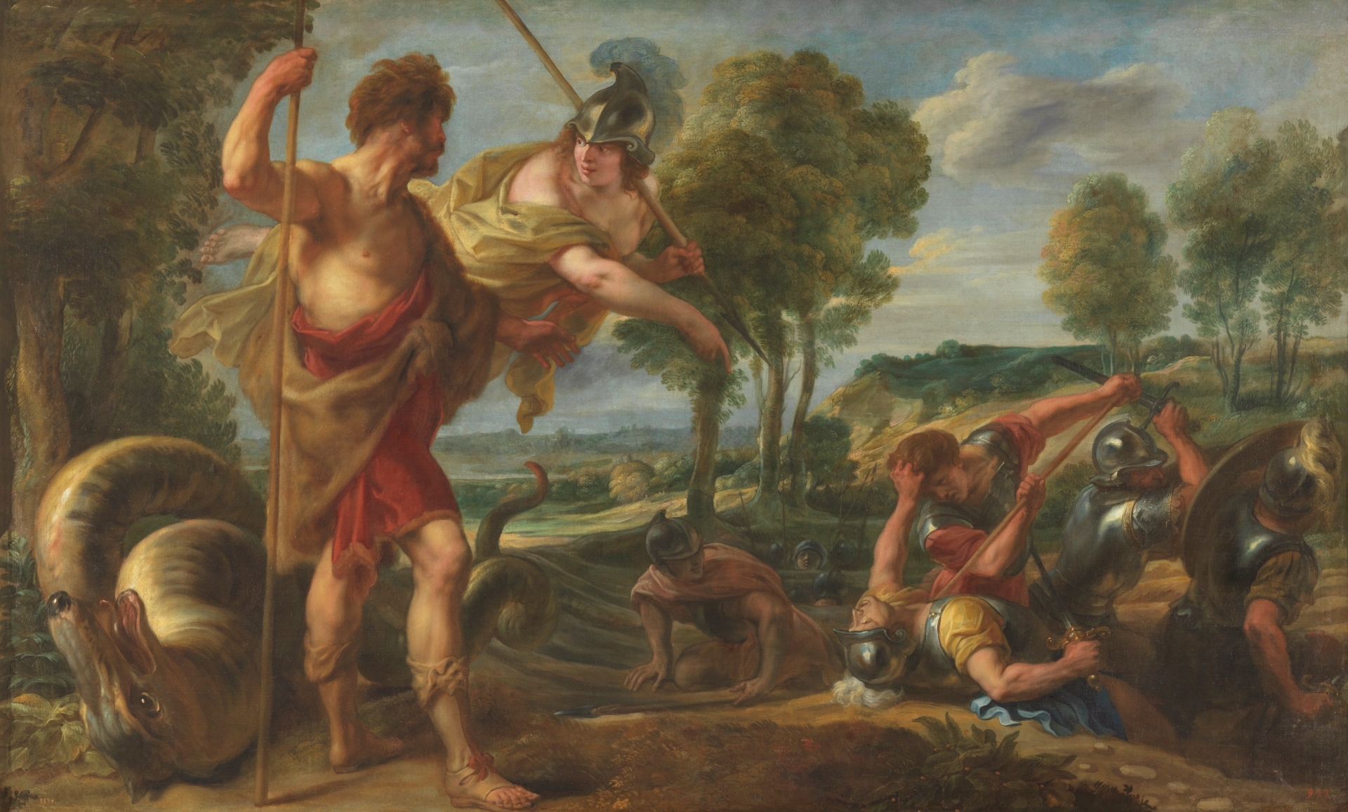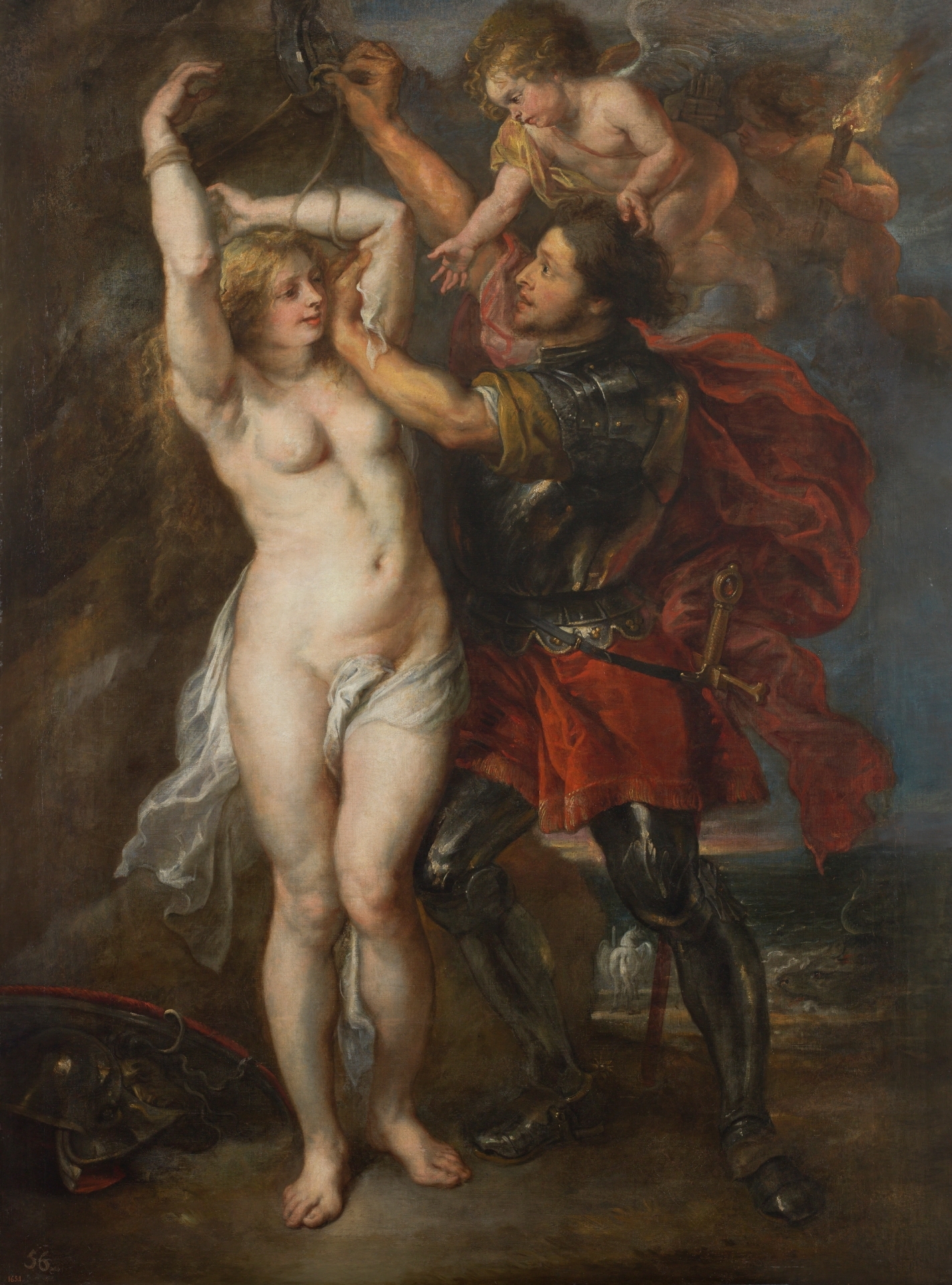 Jordaens va a comenzar su relación con España y con la corte de Felipe IV, precisamente a través de los grandes proyectos encargados a Peter Paul Rubens, primero para la Torre de la Parada, donde el gran maestro le va a confiar la Caída de los Gigantes, Apolo vencedor de Pan, Cadmo y Minerva, Las bodas de Tetis y Peleo, y Vertumno y Pomona, todas ellas en el museo del Prado, salvo la última que se conserva en la Fundación Abel de Lacerda-Museo do Caramulo en Portugal; y, posteriormente, tras el fallecimiento de Rubens en 1640, tiene que terminar las dos obras que Rubens había dejado inacabadas para el gran Salón de los Espejos del Alcázar: Perseo y Andrómeda y Hércules y Anteo.