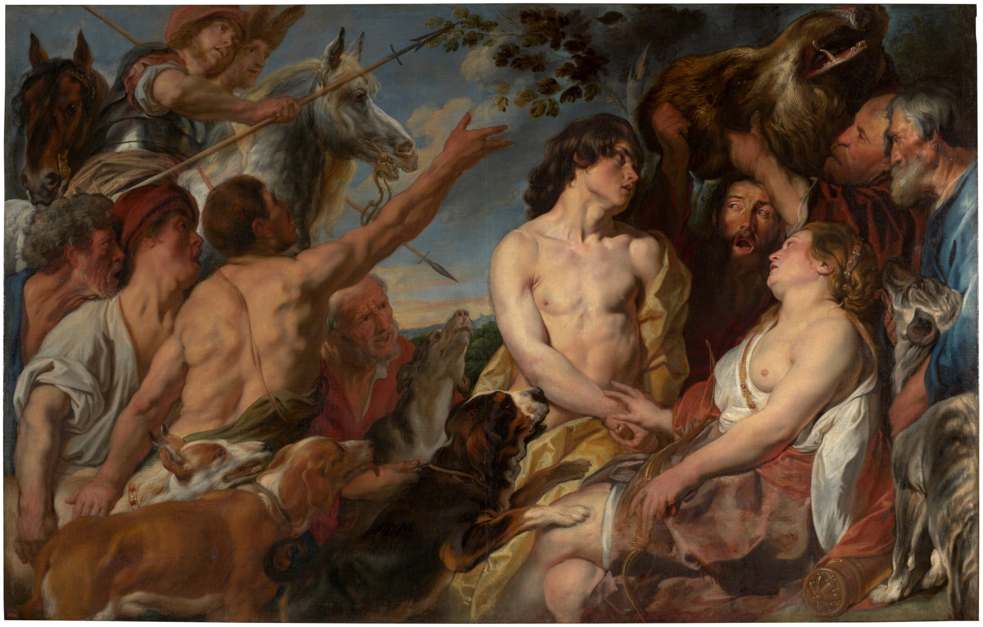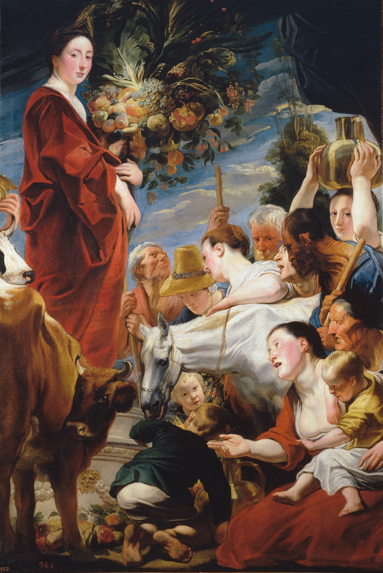 Los temas mitológicos e históricos, en muchos casos van a llegar ya en época de los Borbones, como es la Ofrenda a Ceres (Prado inv. nº P01547), y de Isabel de Farnesio era el lienzo de Atalanta y Meleagro (Prado inv. nº P. 01546), por poner dos magníficos ejemplos del trabajo de Jordaens, donde realidad y mitología se dan la mano.