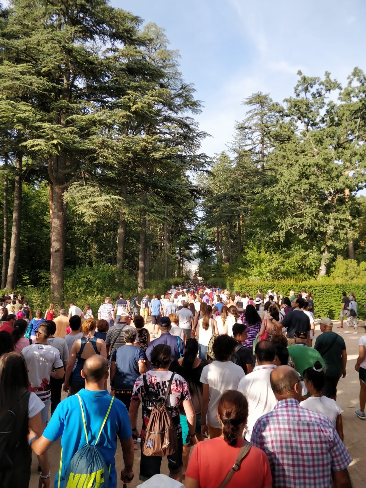 El hecho de que las fuentes no corran todas a la vez si no por turno, hace que todo el público se acumule en el mismo momento en la misma fuente y este año en particular la asistencia ha sido multitudinaria. Por ello no pudimos ver la fuente de la Selva en funcionamiento. Nuestro consejo, viendo que cada vez se hace más popular el ir a contemplar la fuentes, es que vayais si podéis el 30 de mayo, que hay menos gente de vacaciones, y cuando nunca hemos encontrado masificación, o si pasáis un fin de semana en La Granja ir el sábado y el domingo para poder ver todas en funcionamiento, menos la de la Selva. Sería una maravilla poder contemplar todas las fuentes a la vez, pero mientras que no se acometan obras para la modernización del sistema de funcionamiento y reciclaje de aguas eso es imposible. Esperemos que un futuro cercano Patrimonio Nacional aborde esta transformación, al igual que la restauración de algunas de las fuentes que están desde hace años sin movimiento, ya que el Real Sitio de San Ildefonso y su ubicación en pendiente no se entiende sin el espectaculo del agua a través de sus maravillosas fuentes.