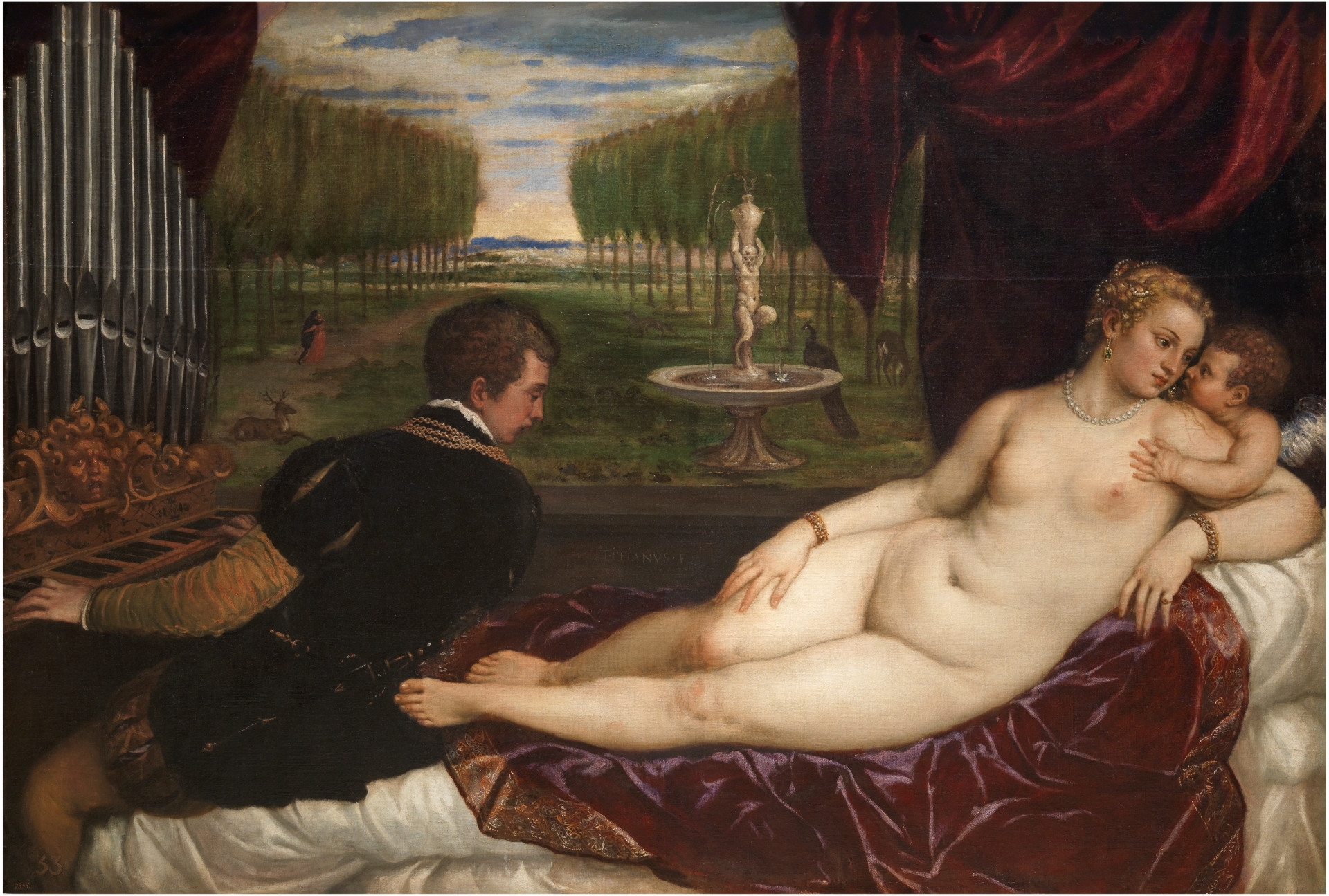 En 1772, ocho años después de que el Palacio Real de Madrid hubiera comenzado a ser ocupado por los reyes, se realizó un inventario general de las obras de arte que en él había y en éste todavía figuraban unas 300 piezas en el “Estudio de Don Andres de la Calleja” para su composición, las cuales habían sufrido daños tras el incendio del Alcázar de Madrid de 1734[1]. Entre las obras que figuraban en aquél momento estaban algunas de las más significativas de la colección real de época de los Austrias como Llanto por Cristo Muerto de Sebastiano del Piombo, el Cristo Crucificado de Federico Barocci o la Venus recreándose en el amor y la música de Tiziano.