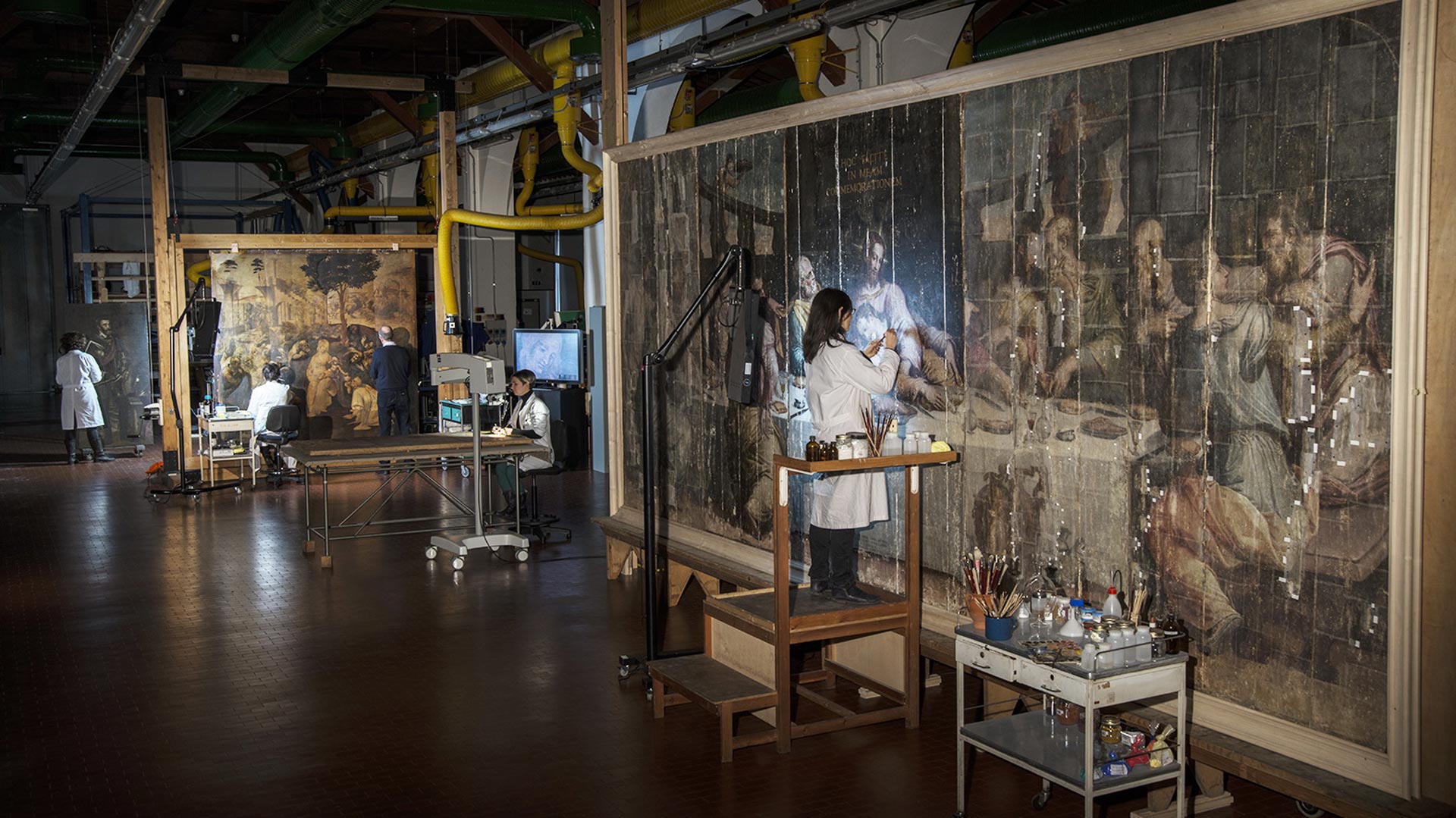 La intervención de las obras, por tanto, no fue una cosa inmediata. Primero se puso a salvo todo lo que se pudo. Se actuó de emergencia sobre las piezas para consolidarlas y que no sufrieran más desprendimientos pictóricos y en ese estado quedaron muchas durante años hasta que las nuevas tecnologías y los avances en la restauración permitieron poder devolverlas a la vida. Ese es el caso por ejemplo de la Última Cena de Giorgio Vasari, una monumental tabla realizada en 1546 para el refectorio de los monjes benedictinos de Via Ghibellina en Florencia. En 2010 la obra pudo someterse a una importante restauración gracias a las nuevas técnicas y a la ayuda económica de diversas fundaciones privadas que reunieron los más de 250.000€ que costó la intervención. Esos esfuerzos han dado como resultado la recuperación de la obra y que luzca en todo su esplendor desde el año 2016 en el refectorio de la Santa Croce.