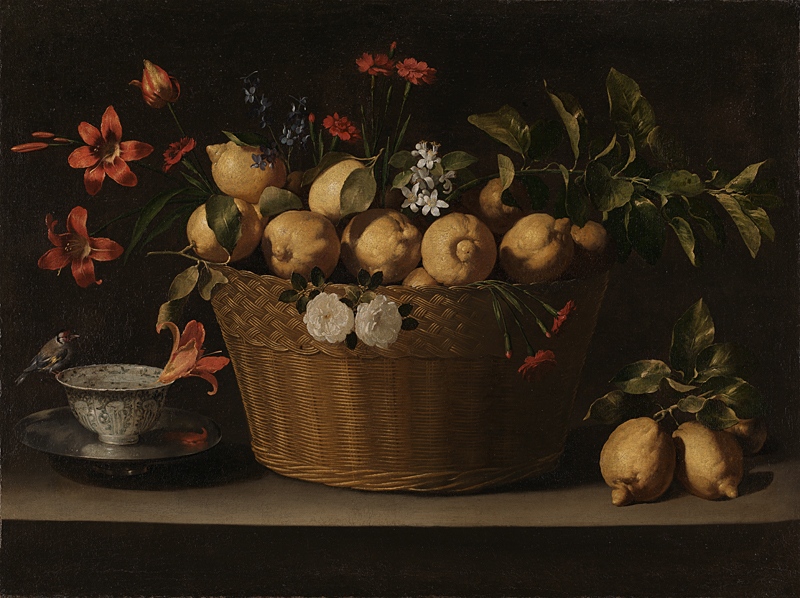 Francisco de Zurbarán: Plato con limones, cesta con naranjas y taza con una rosa, 1633, Museo Norton Simon, Los Ángeles. Foto: wikipedia.