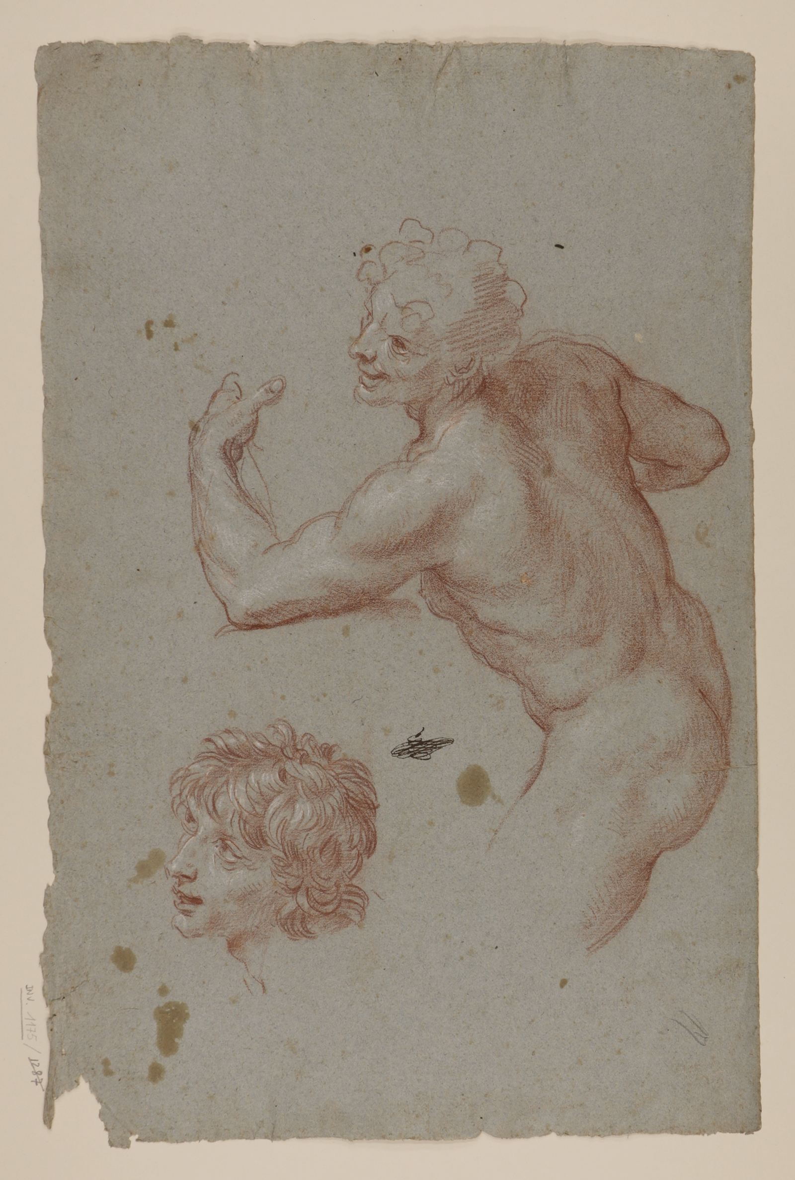 El dibujo se encuentra en la actualidad en el Metropolitan Museum de Nueva York, adquirido según la página del museo en el año 1924 con el dinero legado por Joseph Pulitzer, el famoso magnate de la prensa americana. Sin embargo, si examinamos atentamente el dibujo veremos un elemento ajeno a éste y del que hablamos justamente la semana pasada al tratar el tema de los dibujos adquiridos por la Real Academia de Bellas Artes de San Fernando a la viuda de Andrea Procaccini (para ver el post anterior pulsa aquí). Efectivamente, en la parte inferior central del apunte se puede observar una rúbrica o garabato a tinta parda idéntico al que se aprecia en otros de los dibujos de la RABASF que fueron adquiridos a Rosalía O’More en 1775 y que no es otra cosa que la firma del secretario de la Academia Ignacio Agustín de Hermosilla. Éste marcó de esta forma 130 dibujos que estaban sueltos y que se seleccionaron para exponerlos en las Salas de la Academia para que sirvieran de ejemplo y repertorio de modelos a los estudiantes. Según Manuela Mena, de esos 130 dibujos se conservan rubricados en la Academia tan sólo 94, con lo que 36 salieron de la Academia en algún momento y entre ellos el diseño de nuestra Sibila Líbica (Mena, M: «La procedencia del dibujo de la Sibila…», Miscelanea de Arte, 1982, p. 91).
