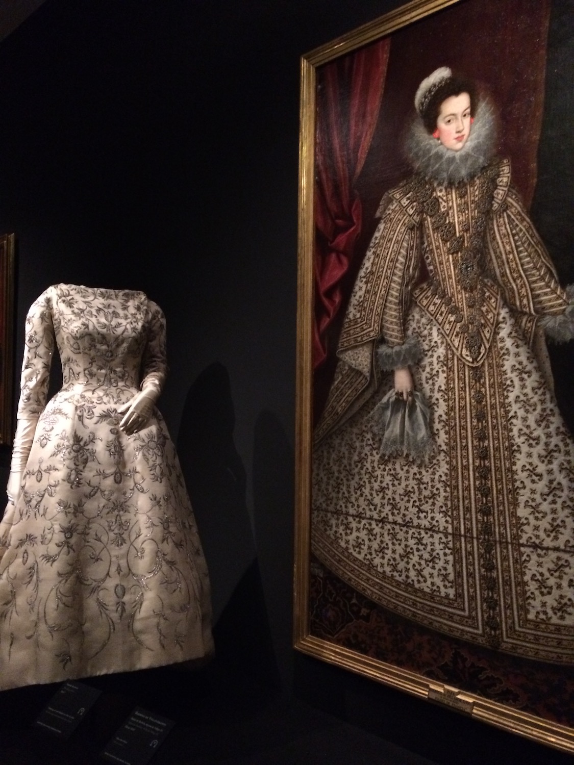 Creemos que se pierde una muy buena ocasión, dada la calidad de las obras que se exponen, de plantear como la indumentaria ha dejado huella y ha acompañado a la pintura a lo largo de la historia. Cuando se confrontan las creaciones de Balenciaga con las obras del Greco por ejemplo, además del color, que es lo que obviamente resalta, caen en el abandono otros aspectos que se podrían tratar en tamaña exposición como podría ser hablar de la paleta del Greco, de la utilización del color, de su significado, de los paños que pinta ahondando en los tejidos históricos y su comparativa con los tejidos que utiliza Balenciaga, o quién era la clientela para la que estaban destinados estos trajes, que al igual que en el caso del Greco no era accesibles para todo el mundo.