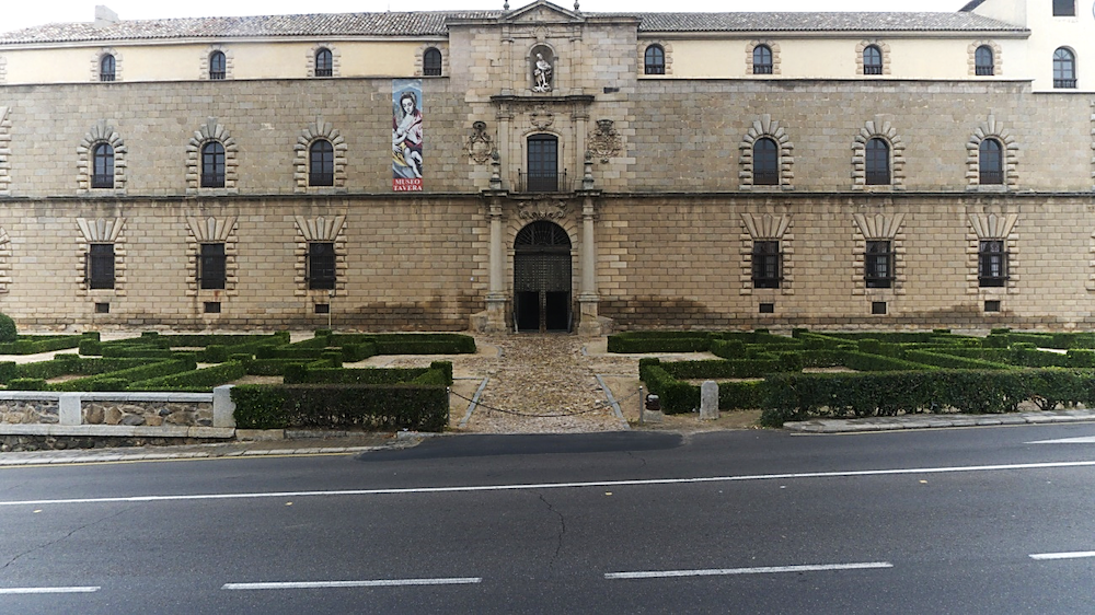 Apuntaba Chueca Goitia que al Hospital de San Juan Bautista le hubiese convenido una portada del tipo de la del Palacio Arzobispal de Toledo, coetánea y en evidente consonancia estilística: con guarniciones de dovelas almohadilladas rústicas, espejos convexos en las enjutas y alternancia de metopas y triglifos en el friso. En este caso va a destacar el empleo de columnas pareadas jónicas rematadas con la cruz del cardenal Tavera, una solución que no ha empleado previamente en Toledo, pero sí en la Catedral de Plasencia o en el Colegio Fonseca de Salamanca. Para la ejecución de esta obra, como en tantas otras, delegará en Hernán González de Lara (entre otros maestros), el más aventajado de sus seguidores.