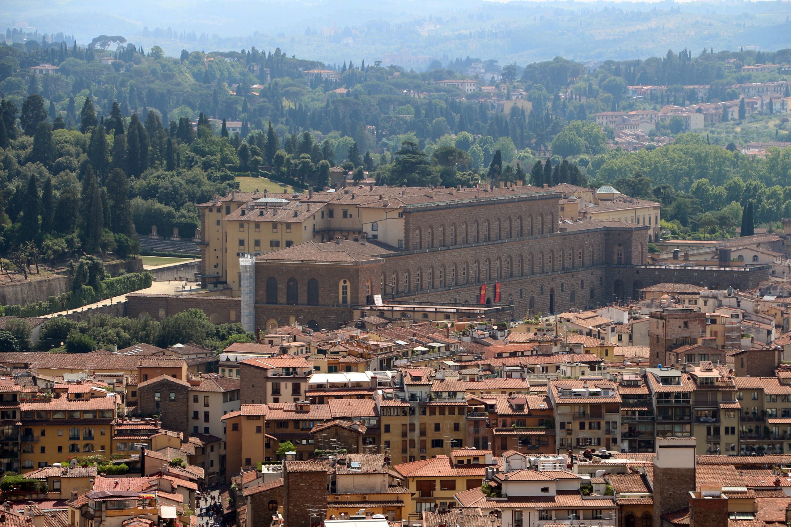 De hecho, construir un palacio familiar era una de las mejores herramientas que las clases altas tenían a su alcance para diferenciarse de las bajas. Era algo así como concederse a sí mismos un estatus social que se basaba en una conexión entre la aristocracia y el propio urbanismo de la ciudad. De manera que, a la vez que las familias construían sus palacios familiares, estaban contribuyendo a la creación de la ciudad tal y como la conocemos hoy. En 1414 empieza el periodo de mayor actividad en la construcción de palacios, entre los cuales podríamos destacar tres: el Strozzi, comenzado en 1489, el más grande de toda Florencia, y del que realmente sólo se usó la primera planta; el Medici, comenzado en 1445, primera residencia de la familia y en cuya fachada podemos ver un monumental escudo de armas; y el Pitti, comprado en 1549 por Eleonora de Toledo y convertido posteriormente en la nueva residencia de los Medici.