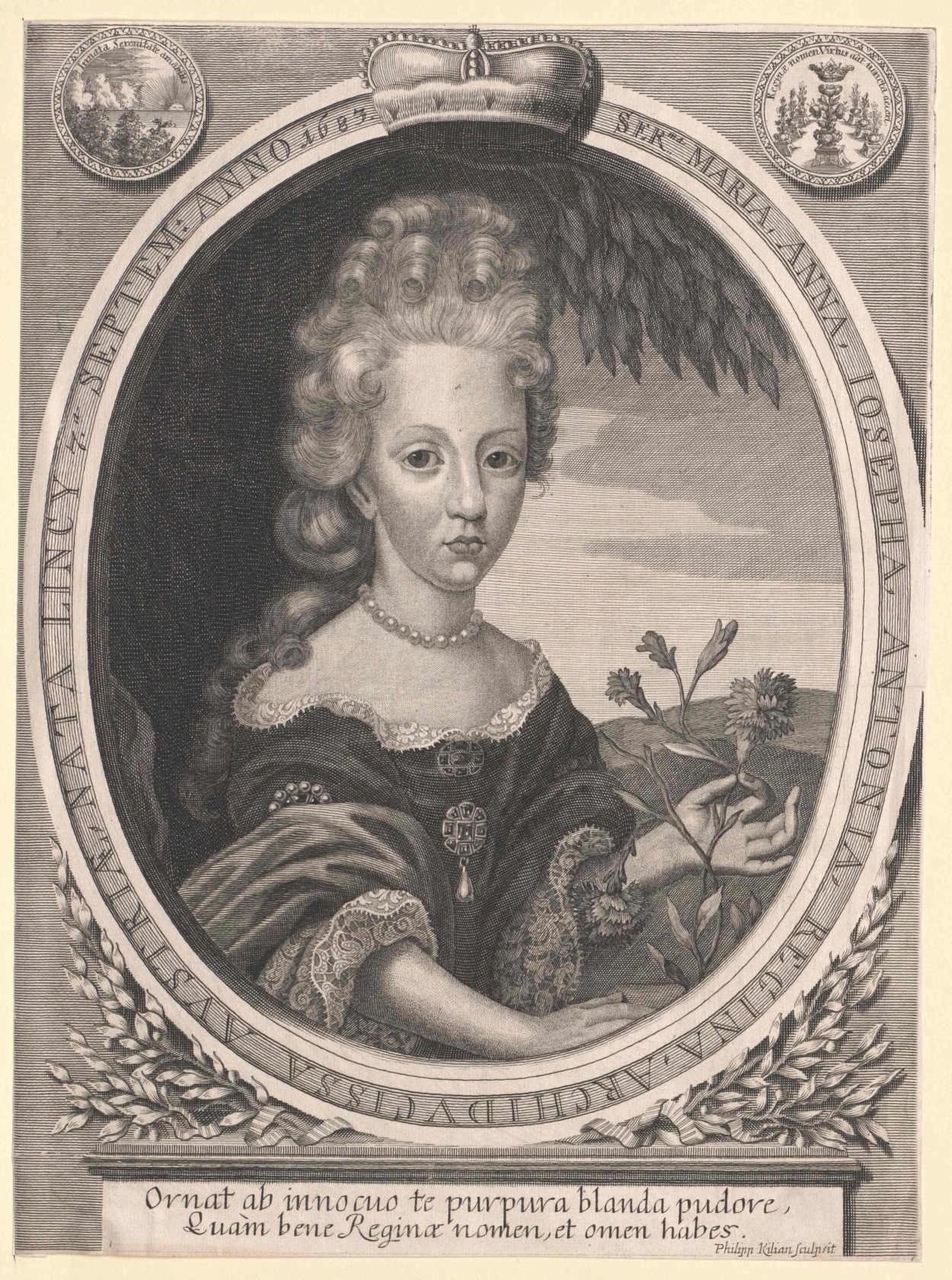 La efigiada es sin duda una hermana menor de las anteriores, pudiendo tratarse de la archiduquesa María Teresa (1684-1696), u otra de las princesas más jóvenes, María Josefa (1687-1703) o María Magdalena (1689-1743).