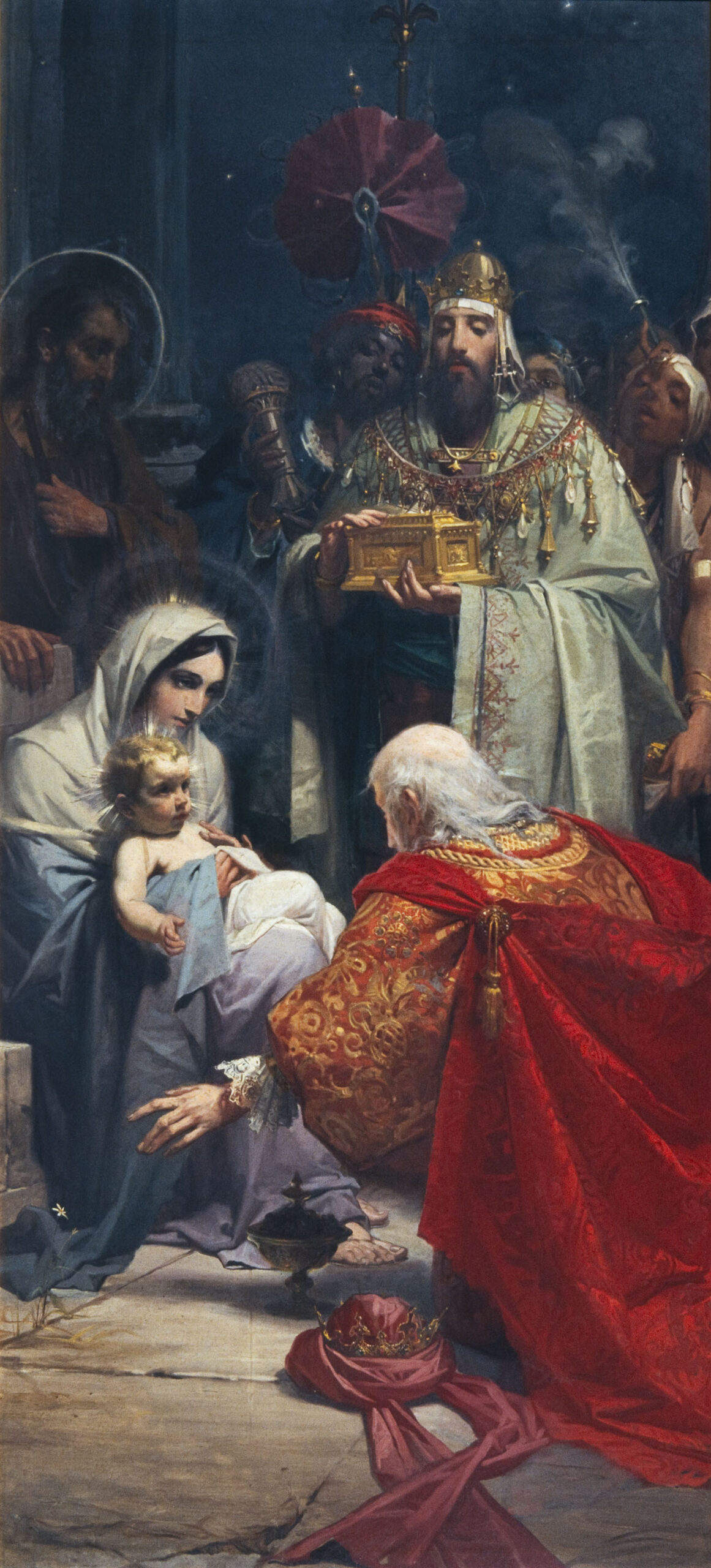 Julio Borrell, Boda de Alfonso XIII con Victoria Eugenia de Battenberg en los Jerónimos de Madrid, 1907. Óleo sobre lienzo, 327 x 464 cm, firmado «Julio Borrell / Madrid-Palacio / 1907». Patrimonio Nacional, nº inv. 10078532.
