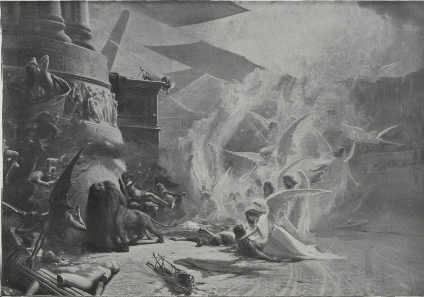 Julio Borrell, La salida del Viático después del atentado en el liceo de Barcelona, 1896-1897. Óleo sobre lienzo, 118 x 169. Fuente: Subastas Balclis, Diciembre de 2013.