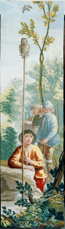Real Fábrica de Tapices de Santa Bárbara (por cartones de Goya), El columpio y Cazador con sus perros. Fuente: © Patrimonio Nacional