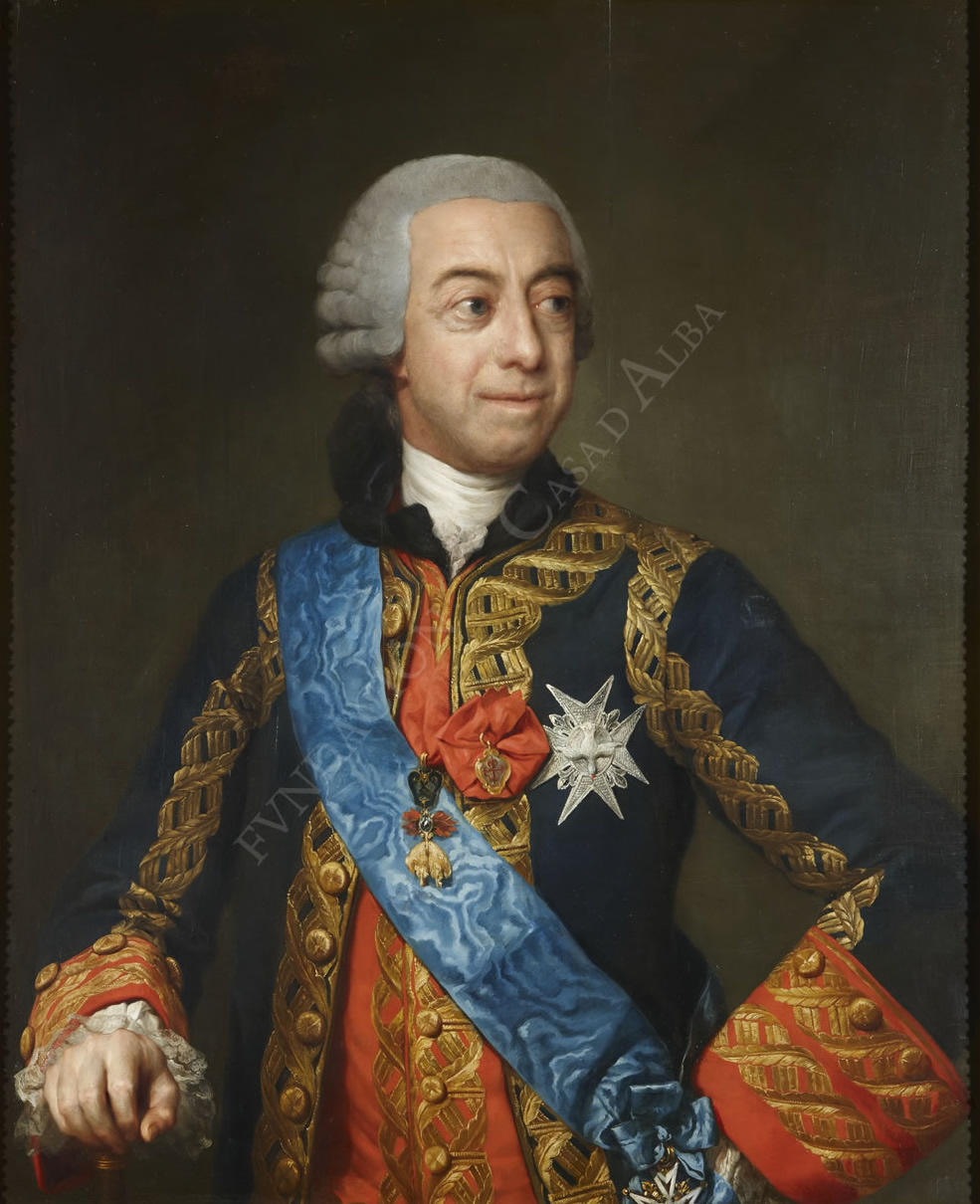 La versión final, en la que ella está sentada sobre una lujosa butaca y donde tras su figura se abre una cortina verde, se encuentra en la actualidad en el Palacio de Liria 4, y fue realizada junto a otro lienzo del padre de su primer esposo, el duque de Alba, Don Fernando de Silva Álvarez de Toledo, XII duque de Alba, con el cual comparte en la actualidad ubicación. De éste también tenemos la fortuna de conservar no sólo el retrato final sino también un bosquejo sin concluir que nos revela nuevamente la forma de trabajar las pinturas por parte del genio bohemio. Ambos retratos fueron referenciados en la biografía escrita por José Nicolás de Azara sobre Mengs, en donde se refería un listado de todas las obras ejecutadas por el pintor durante su estancia en España: