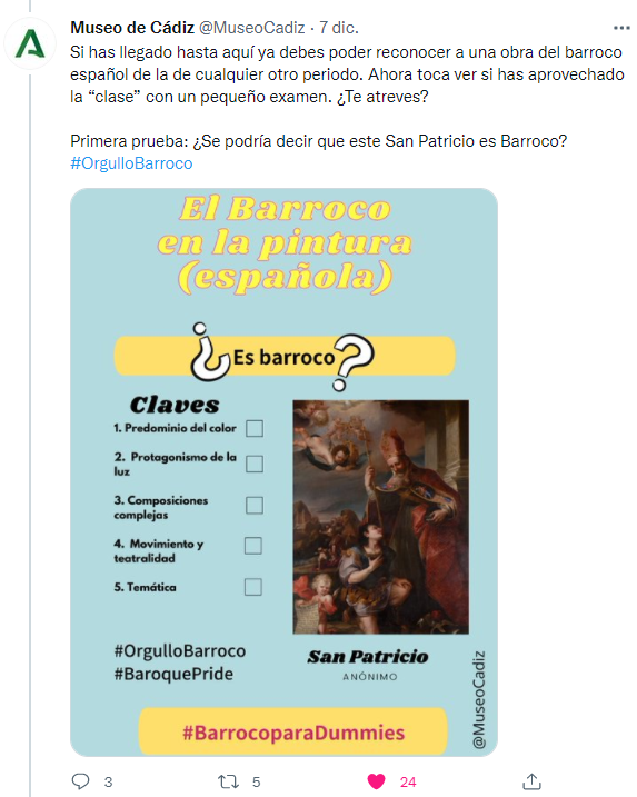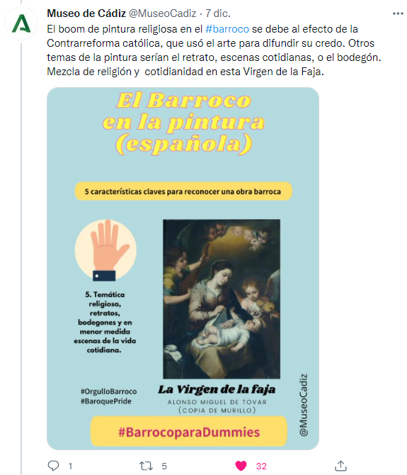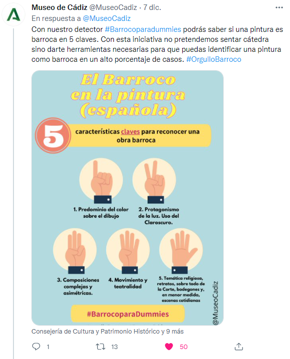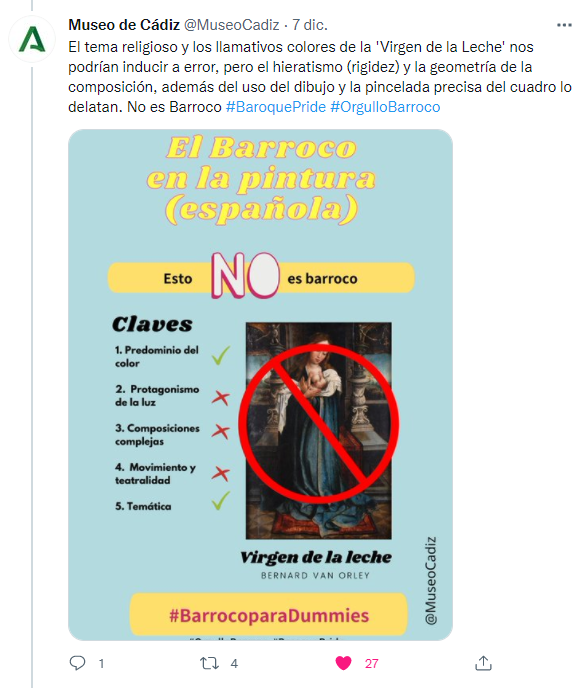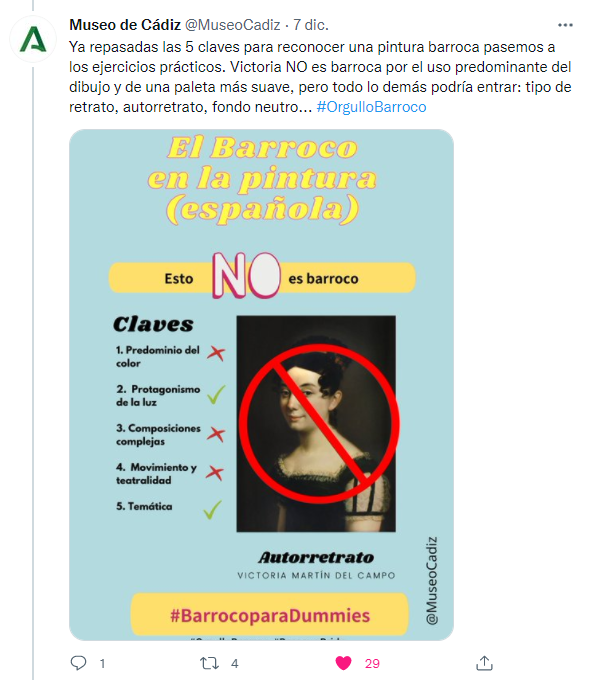 También nos ha gustado mucho la iniciativa de Museo de Cádiz, con su Historia del Arte para dummies. Una forma amena y sencilla de poder identificar las piezas barrocas del museo.