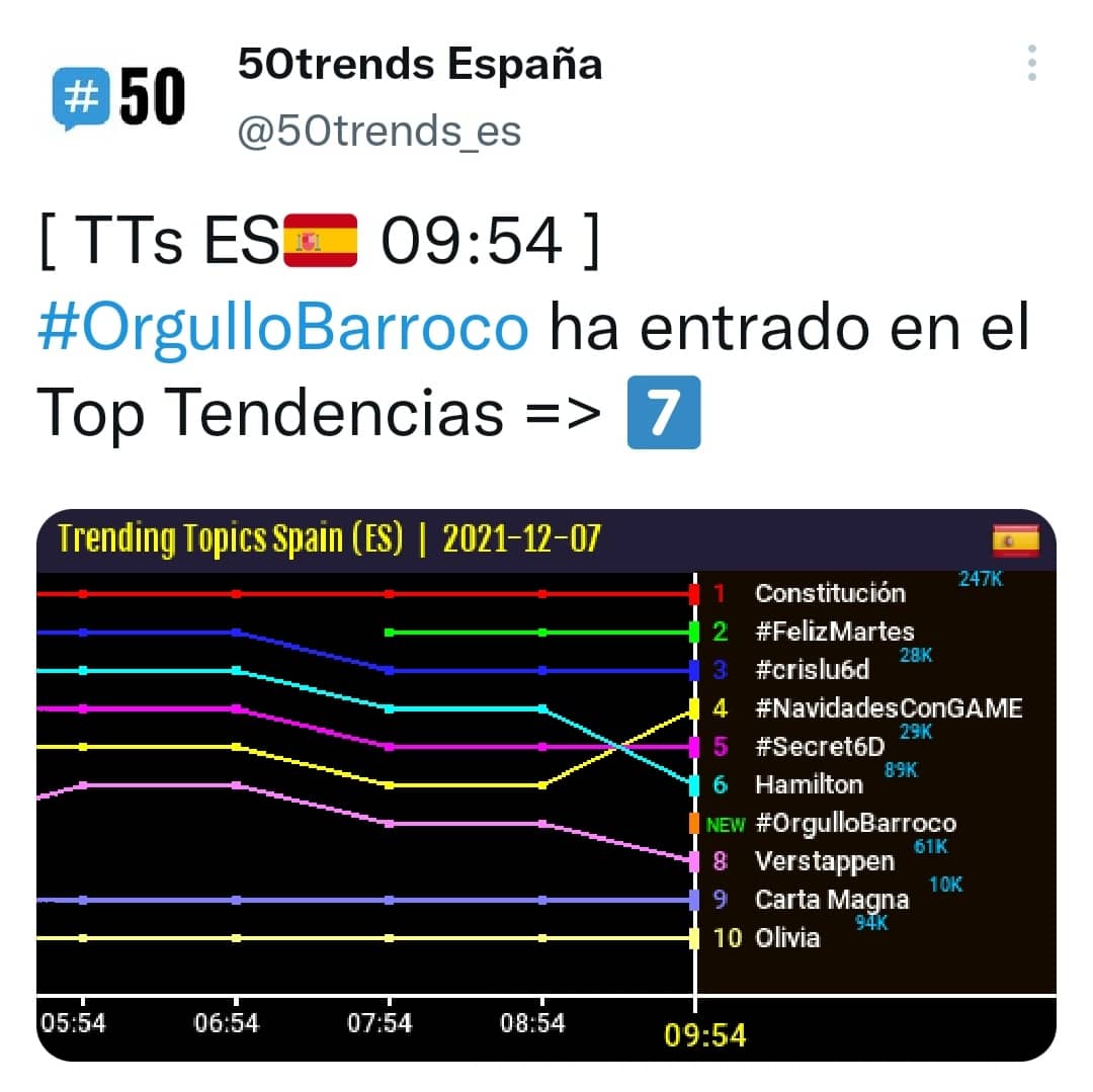 Gráfico del impacto del hashtag #OrgulloBarroco en Twitter