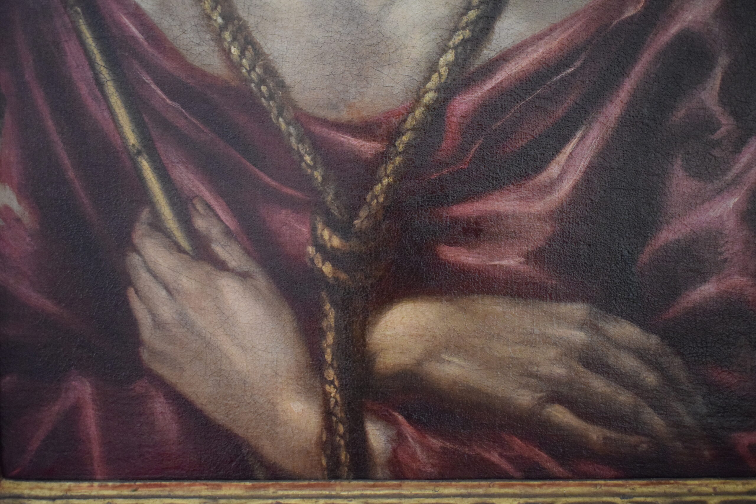 Además, en el caso que nos ocupa, creemos que debió ser también un modelo iconográfico las figuras que se estaban realizando en la corte para capilla y oratorios privados, de cristos en talla de madera policromada. Las imágenes de tallas de Manuel Pereira o Domingo de la Rioja parecen estar en tránsito constante con las pinturas de Antonio de Pereda o el propio Camilo[10]. El parecido con la talla atribuida a Manuel Pereira y que se conserva en el Museo Nacional de Arte de Cataluña (cat. nº: 008335-000) vendría a corroborar esta hipótesis.
