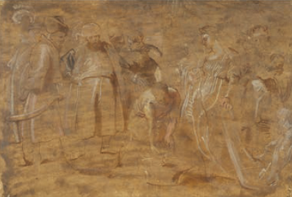Para muestra de esa lectura política tan importante, cuando Rubens está pintando esta historia, que además hizo en varias ocasiones, en el salón más importante del Alcázar de Madrid, sede de la Monarquía Hispánica, el Salón Nuevo sobre el Zaguán, cuelga una versión de esta historia pintada por un seguidor de Robert Campin (Gemäldegalerie, Staatliche Museen zu Berlin Inv. 573B)