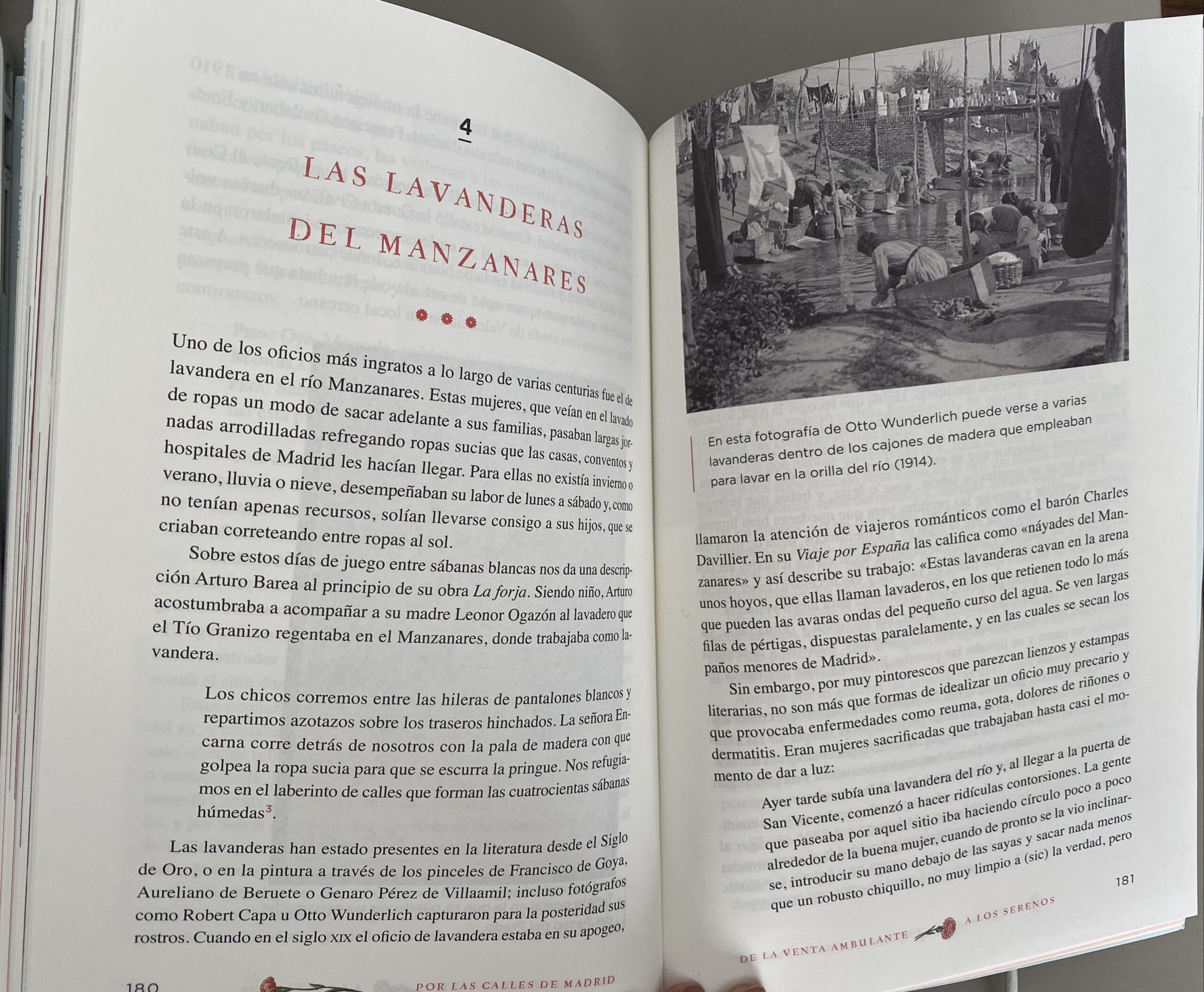 Este es un libro ideal para aquello/as abuelo/as y padres/madres que vivieron toda esta época y que revivirán a través de sus páginas sus recuerdos de infancia. También es un libro para aquellas personas que de refilón conocieron alguno de estos oficios o de los que oyeron hablar a sus padres o abuelos. Pero sobre todo es un libro para las nuevas generaciones que no saben por qué en su barrio se conservan rótulos de comercios que no corresponden con la tienda que albergan. Que no sabían que en Madrid convivieron las vacas con los humanos y que gracias a ello se alimentaron sus antepasados. Que han escuchado de refilón el sonido de un organillo en alguna verbena y no saben su origen. Y que desconocen que Madrid río, antes de servir de zona de esparcimiento y deporte, fue una de las zonas donde la gente más humilde se ganaba la vida lavando la ropa de los otros. Por las calles de Madrid habla de nosotros, de lo que fuimos, de lo que debemos conservar, de lo que tenemos que amar y proteger ya que es parte de nuestra identidad. Una identidad que en ocasiones ha sido tan enterrada por el «progreso», que en nuestra ciudad se muestra destructor con todo lo anterior, que ha hecho que desconozcamos a muchos de sus personajes e historias del pasado. Merece la pena recuperar todas esas historias y merece mucho la pena adentrarse en las páginas de Por las calles de Madrid. Un libro profusamente ilustrado, que se lee en un suspiro, que cuenta una parte de nuestro ADN, y que tras terminarlo uno sólo desea poder leer la siguiente parte.