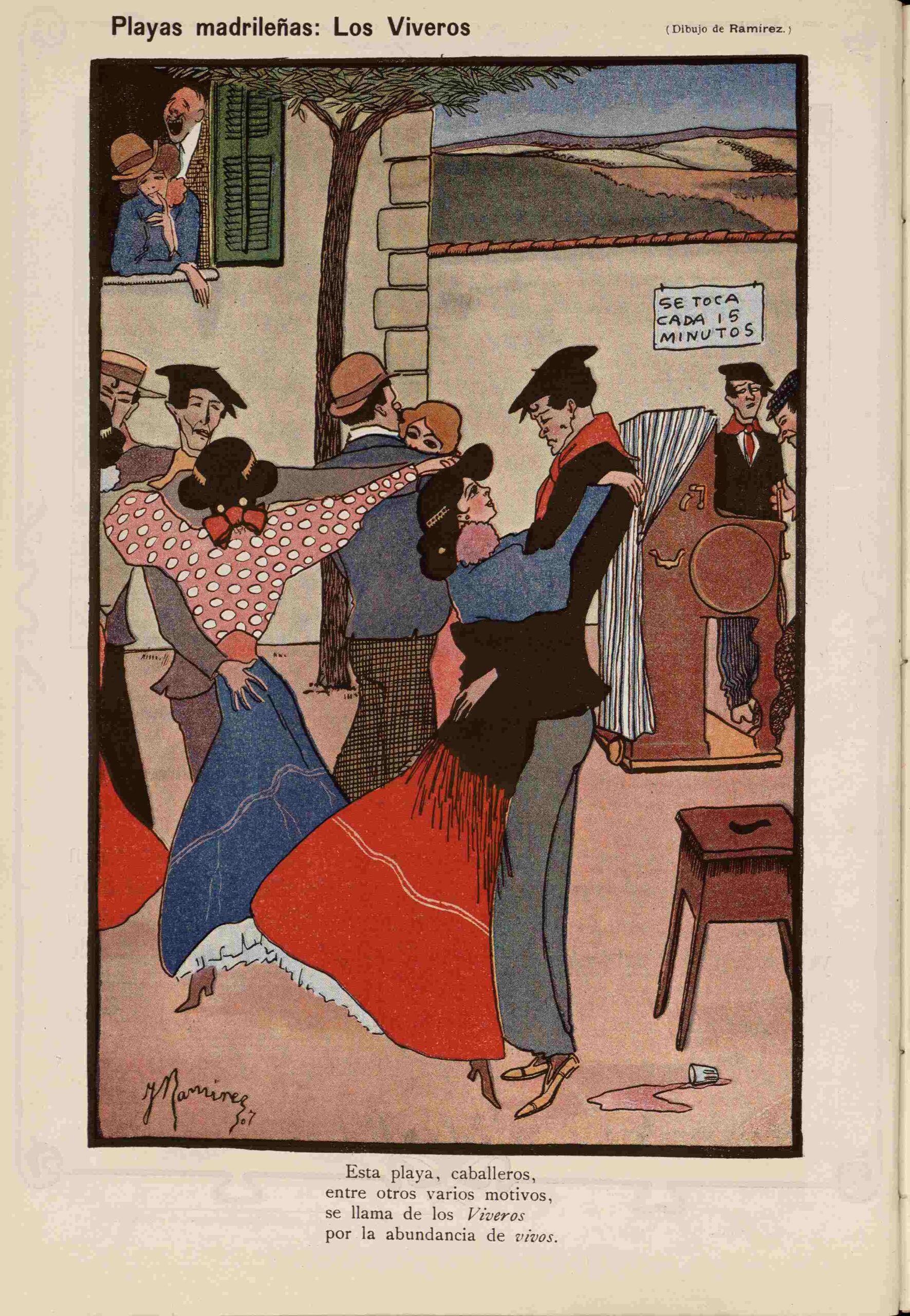 Hubo un tiempo en que el oficio de muchas jóvenes madrileñas antes de casarse fue el de la costura, ya fuera en grandes o pequeños talleres, llenándose en San Antonio su verbena de modistillas. Hubo un tiempo que la gente iba a comprar la leche con su jarra o cántara a la lechería del barrio, la cual contaba con sus propias vacas en la trastienda. Hubo un tiempo en que no había agua corriente en las casas, las gentes bajaban a las fuentes públicas a llenar sus botijos o cántaros, y los aguadores servían agua por las calles al grito de «¡Agua fresca!». Hubo un tiempo que al carecerse de ese agua corriente había lavanderas, que a las orillas del río Manzanares, metidas en cajas de madera, se afanaban en golpear e intentar blanquear la ropa sucia que les llegaba, para ganarse unas perras. Hubo un tiempo en que las castañeras formaban parte de nuestro paisaje habitual a partir del otoño. ¿Quién no soñaba de pequeña con un cucurucho de castañas calientes cuando sus padres la llevaban a la Plaza Mayor? Hubo un tiempo también en que los carteles de cine eran pintados a mano, y dependiendo de si estabas en tú barrio o subías al centro el cartel era diferente y mucho más bonito. Y hubo un tiempo en que los Serenos eran los que «patrullaban» la noche madrileña. Abrían los portales de sus casas a la gente, se aseguraban de la tranquilidad del barrio y se convirtieron en uno de los personajes más entrañables y queridos de nuestro Madrid.